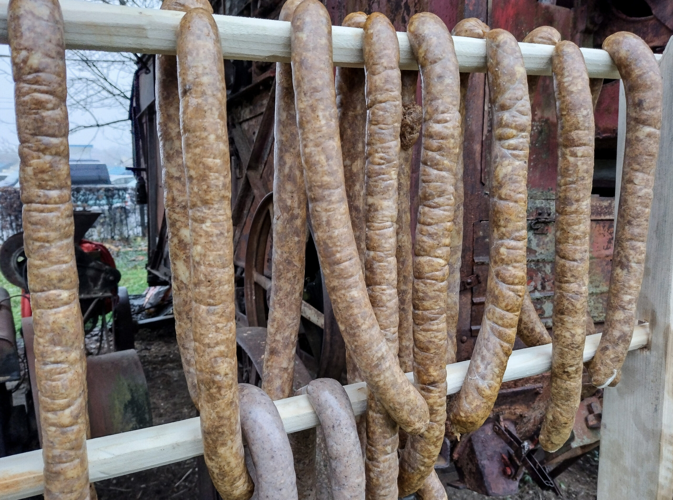 Înainte de afumare, lasă cârnații la zvântat într-un loc răcoros și bine aerisit până se usucă coaja.