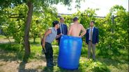 Una dintre scenele de tot rasul, din episodul pe care il veti putea urmari in aceasta seara, la Kanal D, il infatiseaza pe primarul Ghita Spagoveanu, balacindu-se in butoiul plin cu apa, chiar in curtea casei.