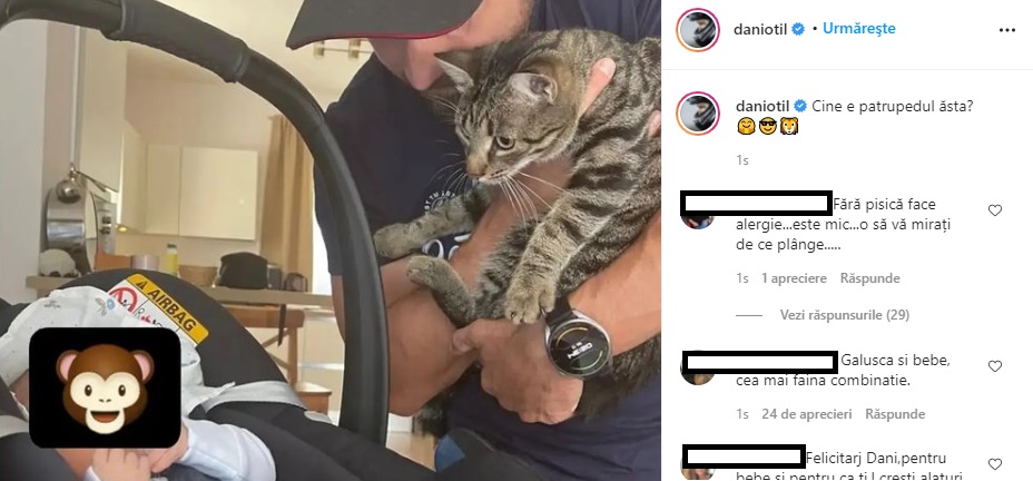 O altă fotogarfie postată de prezentator îl arată pe bebelușul său motanului. Și aici fanii au intervenit: „Fără pisică face alergie…este mic…o să vă mirați de ce plânge…”