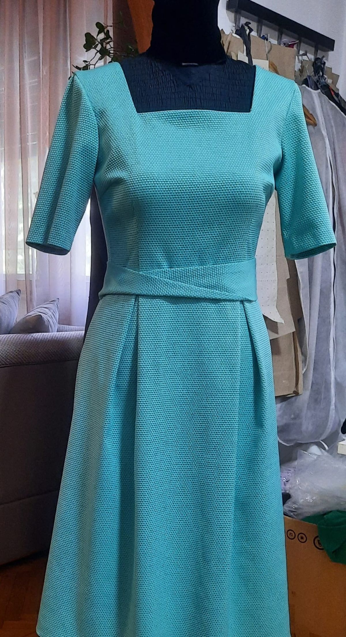 "Este o culoare care invită la optimism, la seninătate, la bucuria de a trăi. Este un aqua vivace, calm și puternic, în același timp. Este un brocard, cu elastan, care se așează frumos pe siluetă. Nu este pentru prima oară când Prima Doamnă alege să poarte nuanțe de albastru, de la bleu ciel, până la albastru intens, royal, dacă mă gândesc la ținutele pe care i le-am creat cu ocazia vizitei Papei, la ținutele purtate a Zilele Europei, la vizita în Statele Unite și întâlnirea cu președintele Trump.