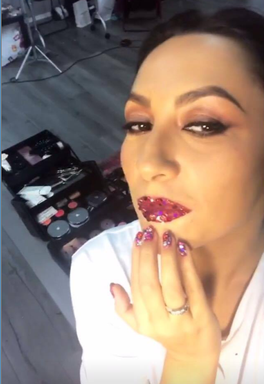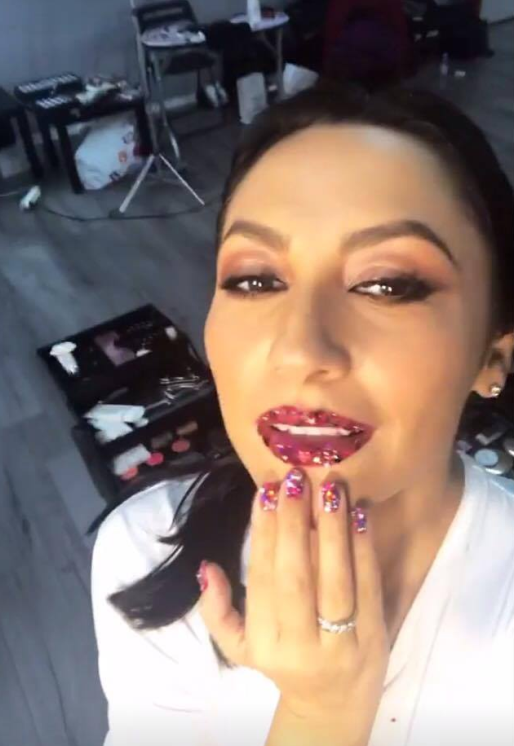 Artista a fost atat de incantata de felul in care aratau buzele ei incat, a mers sa o vada cei doi copii ai ei si abia apoi a spus ca se va demachia.