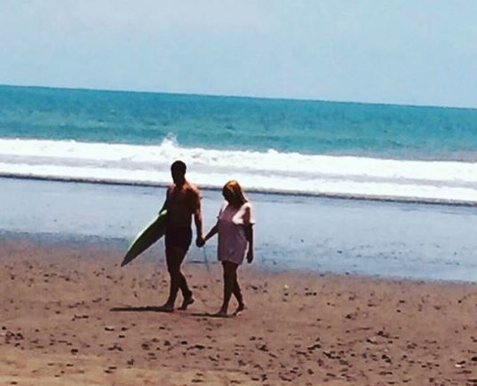 Asa cum era si de asteptat, Adrian Alexandrov posteaza fotografiile pe care I le face Elena Udrea, la malul Oceaului, cu placa de surf in mana, mandru de performantele pe care le face in acest sport.