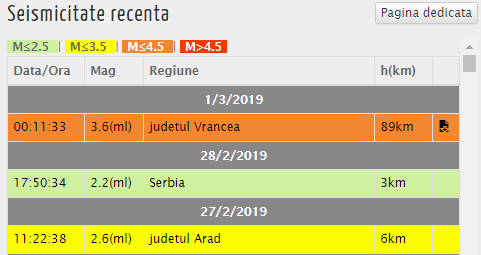 În urmă cu o noapte, un cutremur a avut loc în județul Vrancea. Seismul a avut loc la ora 00:11, având o magnitudine de 3.6 grade pe scara Richter. De asemenea, cutremurul s-a produs la o adâncime de 89 de kilometri.