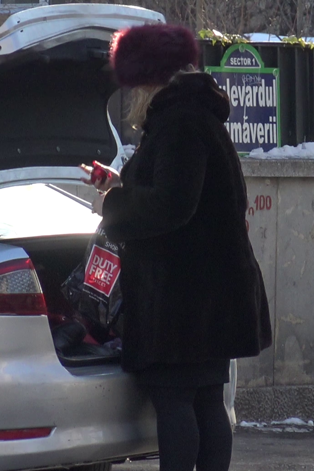 Si ca tacamul sa fie complet, intr-un moment de relaxare, Onuta s-a refugiat la portbagajul masinii, scotand o sticluta de parfum, cu care si-a aplicat direct in strada cateva "puff-uri", semn ca urma o intalnire importanta pentru sotia lui Viorel Lis.
