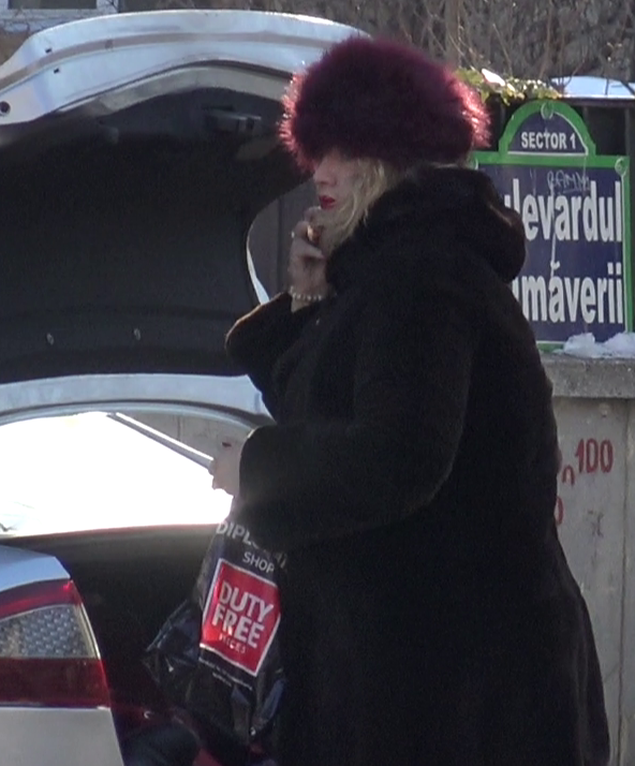 A doua zi, Oana a facut cateva modificari, pastrandu-si in schimb aceeasi haina de blana. Femeia si-a tras o fusta foarte scurta, un pantof cu toc care insa nu prea era indicat pe "patinoarele artificiale" create in centrul Bucurestiului, iar in cap turbanul a fost inlocuit cu o caciula mitoasa, de o culoare imposibil de reprodus in cuvinte.