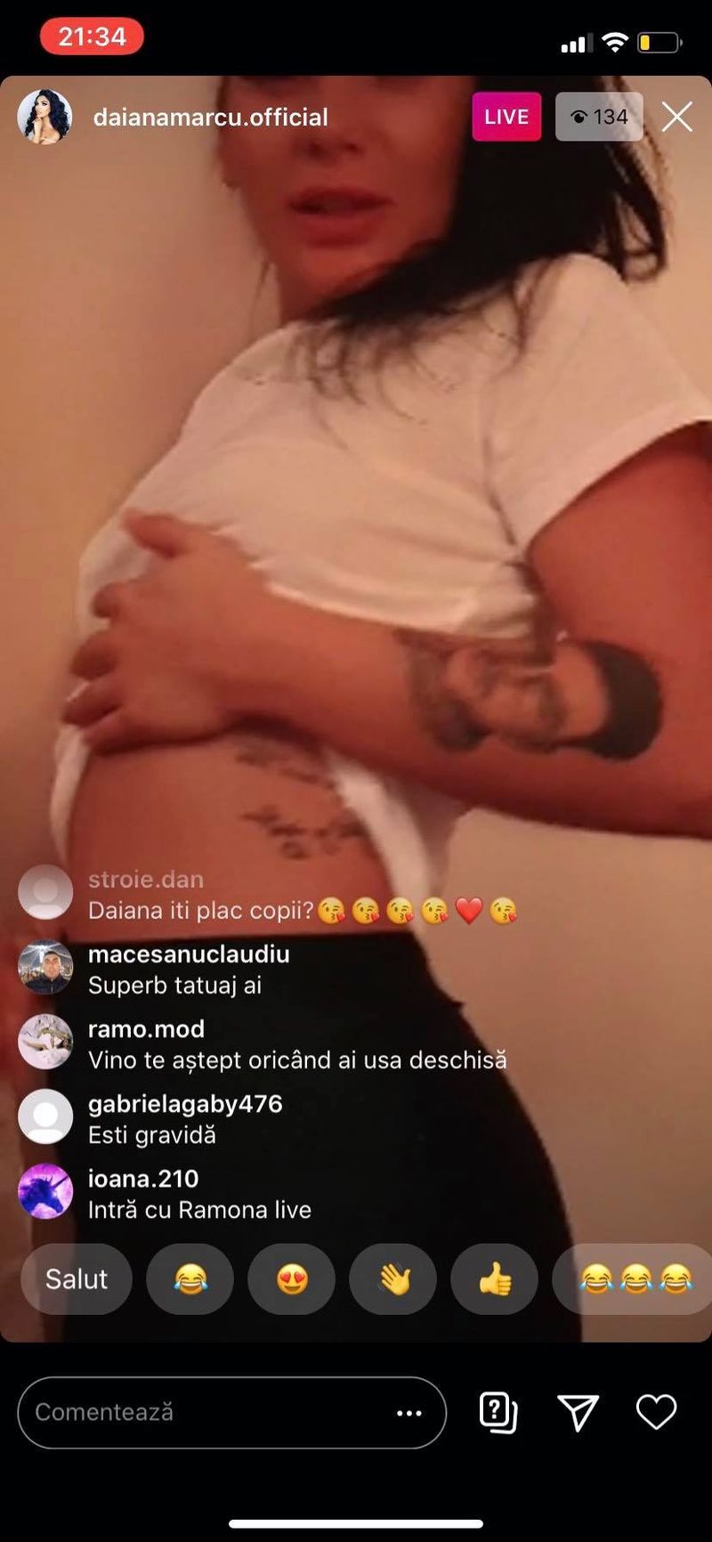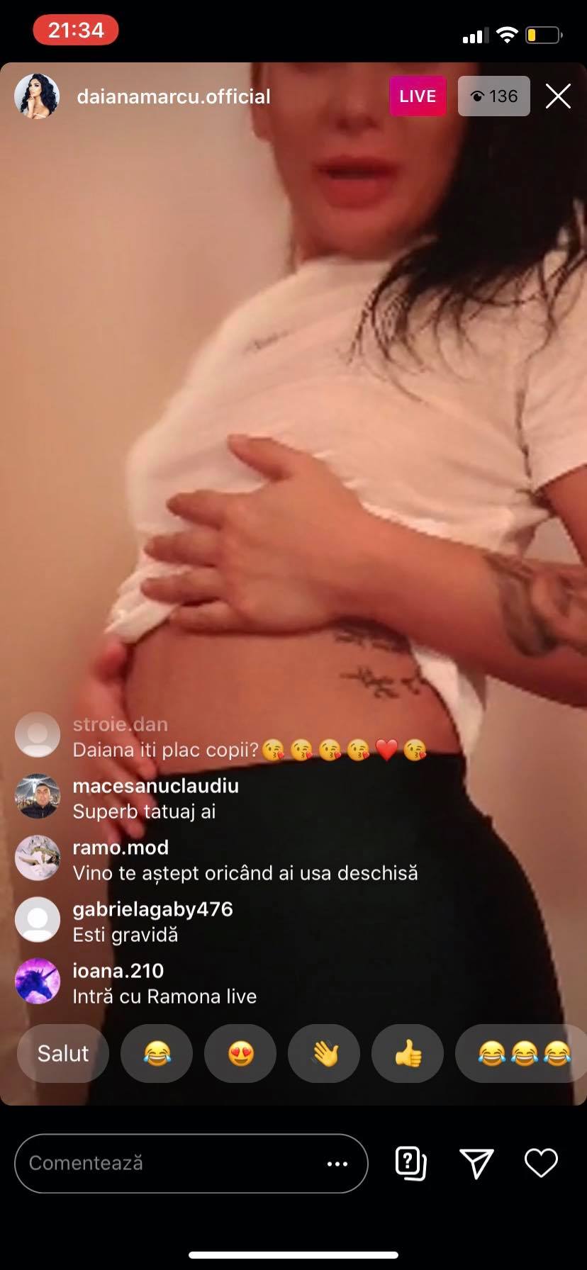 „Ramonaaa, sunt însărcinată! Trezește-te! Da, sunt însărcinată! Hai că vă arăt! Se vede, nu?”, a spus Daiana în timp ce își arăta burtica de gravidă.