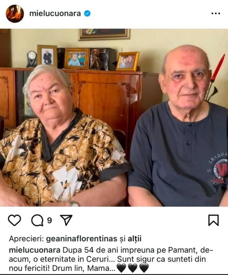 „După 54 de ani împreună pe Pământ, de-acum, o eternitate în Ceruri... Sunt sigur că sunteți din nou fericiți! Drum lin, Mama...!”, a fost mesajul omului de televiziune, în memoria mamei sale.