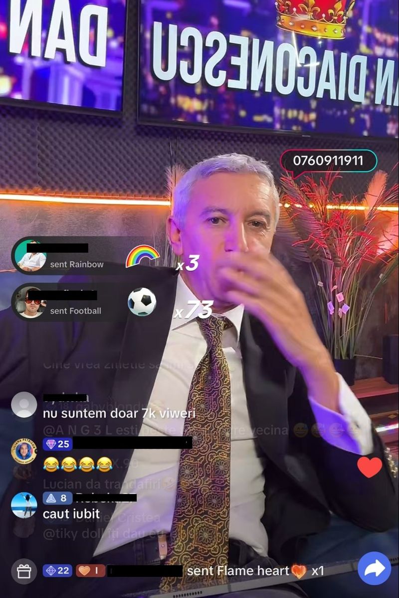 Dan Diaconescu a petrecut 6 ore și jumătate pe live-ul de pe TikTok, abordând mai multe subiecte, cum ar fi despre începuturile în presă și în televiziune, dar și despre cum făcea bani în facultate, însă nu a ocolit nici cazul