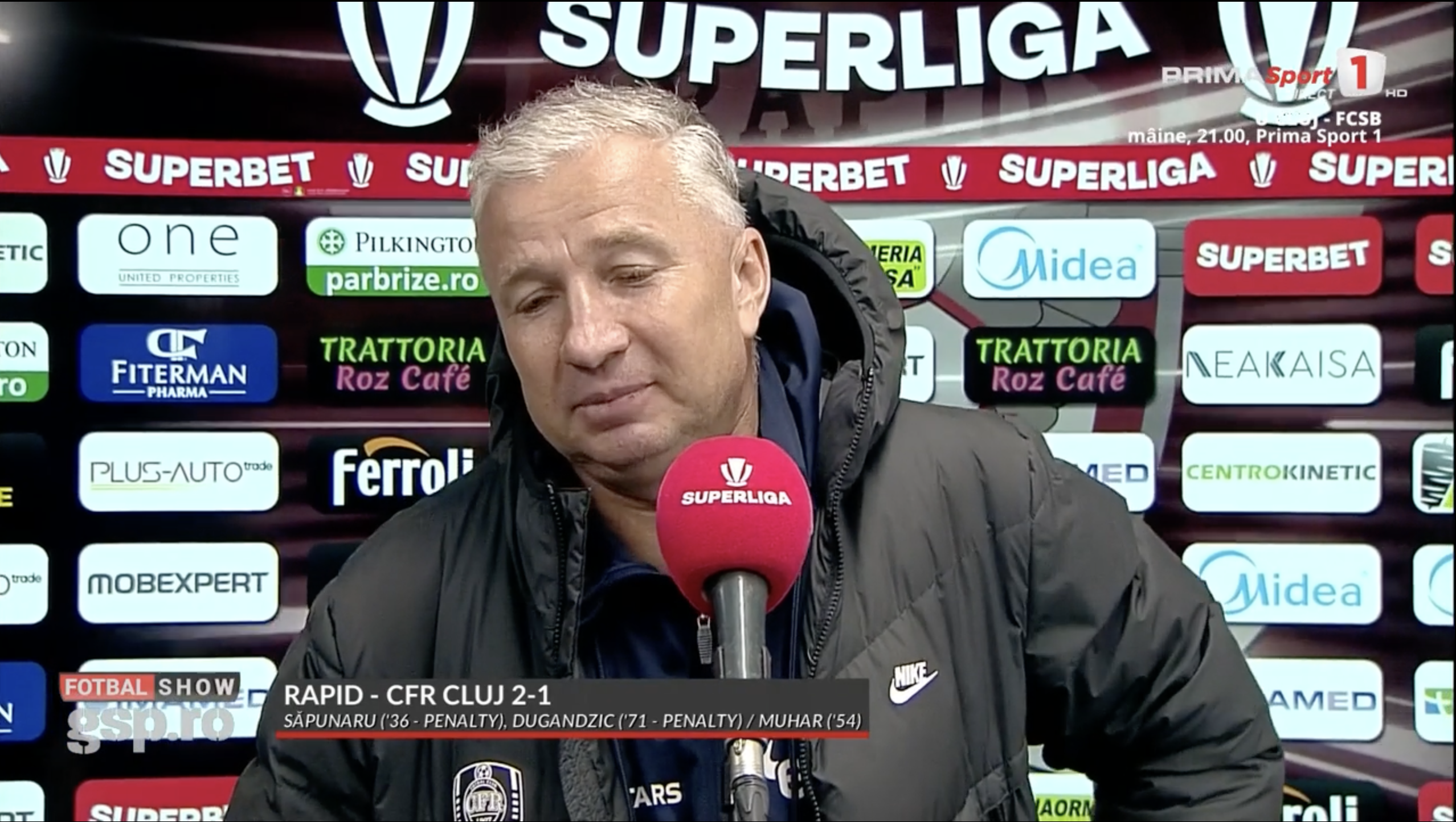 ”Un arbitraj ca pe vremea lui Viitorul și al lui Scornicești, asta e impresia mea. Nu aș vrea să îi iau din merite lui Mutu, a făcut o treabă foarte bună la Rapid, au făcut un meci foarte bun, dar dacă câștigau fără ajutorul arbitrului era mai bine. Eu zic că a fost o viciere clară de rezultat. Popa 2 – CFR 1, puteți să puneți titlul așa”, a spus Dan Petrescu, imediat după meci, la DigiSport.