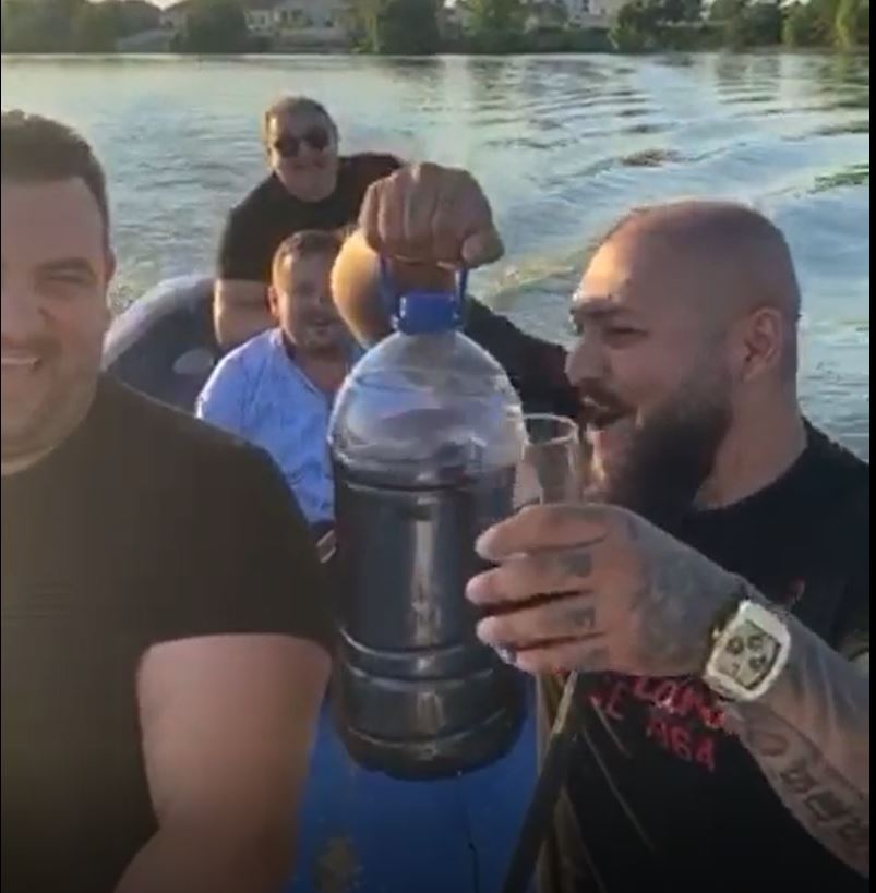 ”Suntem pe balta Griviței, la relaxare”, a anunțat Dani Mocanu. Și, când spune relaxare, Dani Mocanu știe ce vrea, motiv pentru care, parcă de nicăieri, a scos un bidon de vin, deja început, și cu paharul plin cu lichidul rubiniu, a închinat în cinstea prietenilor săi. ”Astăzi ne-am permis și noi să ne luăm o zi liberă pentru că fiecare din noi muncim și ne zbatem să ne câștigăm existența. Ne-am luat o zi liberă să bem și noi un spriț, aici, pe lac”, a explicat Dani Mocanu.