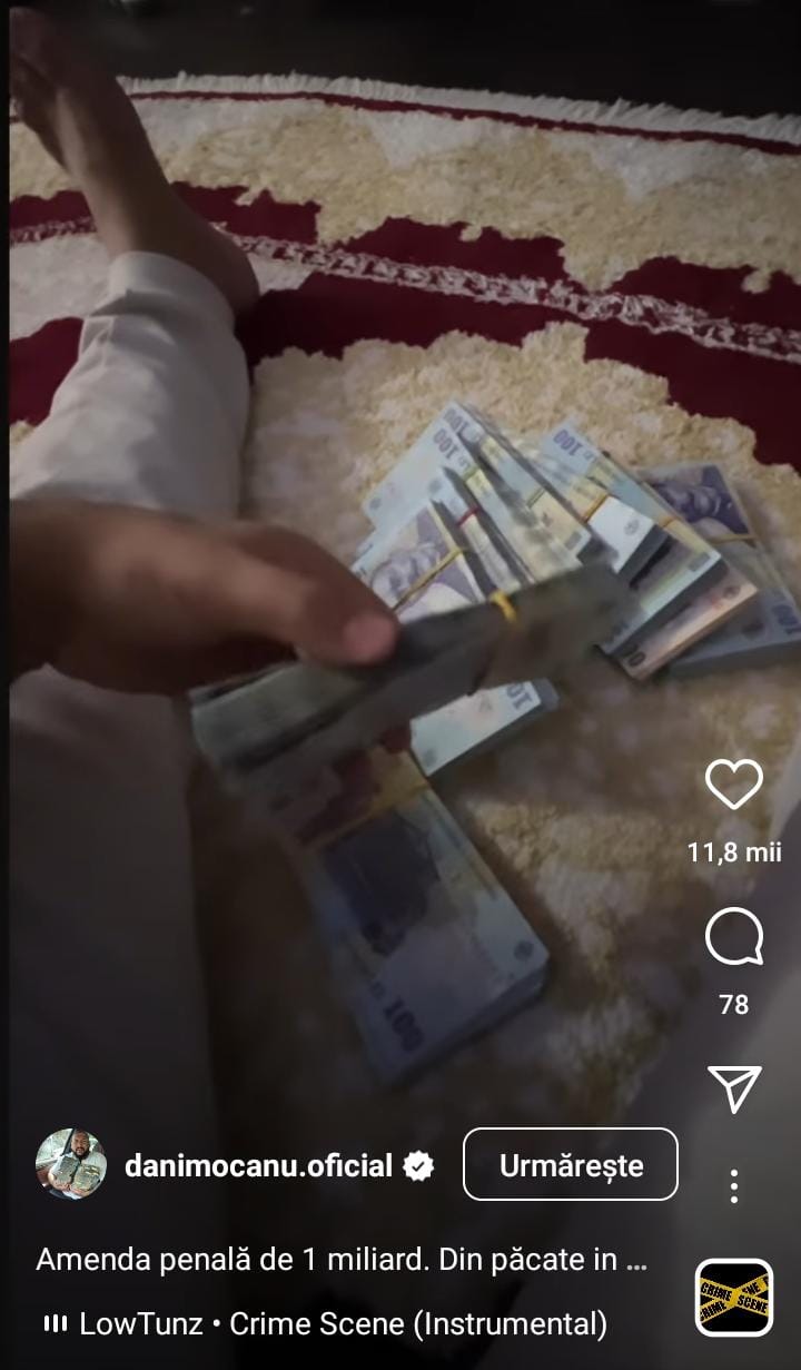Cum Dani Mocanu este foarte activ pe rețelele de socializare, artistul s-a lăudat în fața fanilor cu banii pe care îi are de plătit. În imaginile publicate de manelist se poate observa o sumă considerabilă de bani, ceea ce susține el a fi echivalentul amenzii penale pe care o are de achitat.