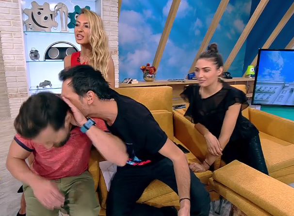 Dani Otil, sarutat pe ureche si pe gat in direct! Razvan a luat-o imediat la intrebari pe Flavia: "De ce miroase a uleiul tau de picioare?"