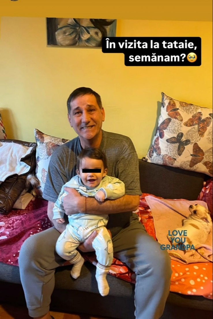 „În vizită la tataie, semănăm”, a scris Daniela Crudu în dreptul imaginii unde apar tatăl ei și fiul ei.
