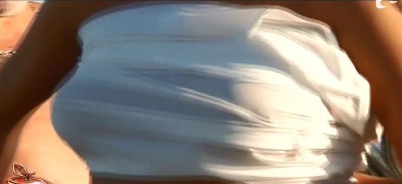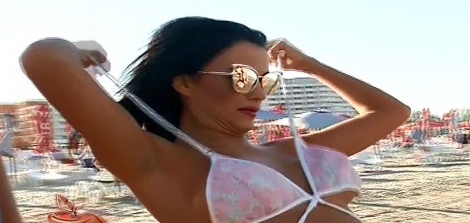 Daniela Crudu a filmat un material in Constanta, pe malul marii. Daca la inceput „pacatoasa” a oferit imagini sexy in costum de baie, Cruduta a acceptat provocarea de a-si da sutienul jos, in fata tuturor.