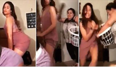 Momentul cu cele doua adolescente, prinse de mama lor in timp ce fac twerk, a ajuns viral.