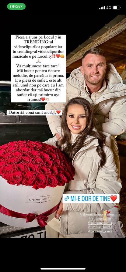 Noua sa melodie, lansată de doar două zile, a ajuns deja în trending pe YouTube, ocazie cu care artista le-a mulțumit tuturor fanilor săi. În cadrul unui mesaj postat pe rețelele de socializare, Georgiana Lobonț a împărtășit că noua sa piesă, în care apare în videoclip alături de soțul său, Rareș Ciciovan, are foarte mare succes. Pe lângă acest lucru, de când s-a întors din Maldive, artista a avut serile ocupate cu o mulțime de evenimente, semn că situația care s-a creat în ultima perioadă a fost o rampă care i-a adus cântăreței și mai multă popularitate.