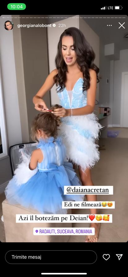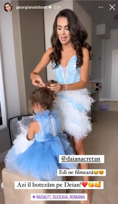 Georgiana Lobonț a postat în mediul online mai multe imagini din ziua cea mare, de dinainte de botez, atunci când își aranja fiica pentru petrecere, din momentul în care au ajuns acasă la micuț, acolo unde cei mici s-au oferit chiar să-l schimbe pe finul lor, dar și de la petrecere, acolo unde a și cântat și i-a distrat pe invitați cu piesele sale, foarte iubite și apreciate de o mulțime de fani.