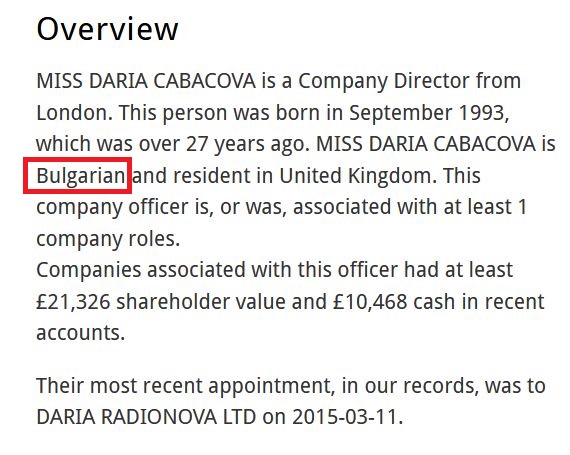 De ce și-ar fi ascuns Daria Radionova originile bulgare? Este greu de spus! Cert este că iubita lui Alex Bodi a ”jonglat” cu naționalitatea ei exact așa cum i-a convenit. De exemplu, cu 5-6 ani în urmă, atunci când tabloidele britanice au descoperit-o, Daria a fost prezentată ca o rusoaică ce se trage dintr-o familie foarte bogată.