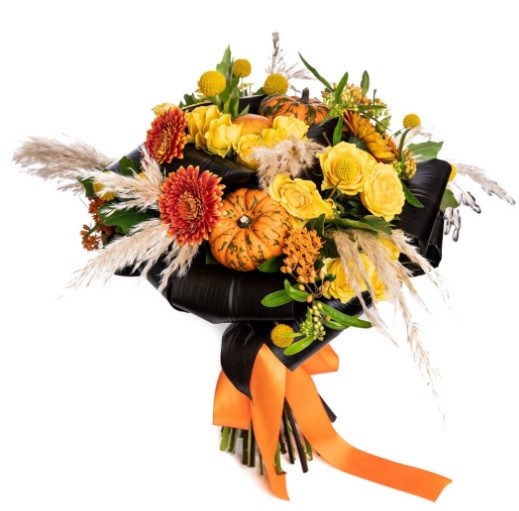 Pentru ca ziua de Sf. Andrei este si ultima zi de toamna, poti darui un buchet inedit, care cu siguranta va fi pe placul oricui. Este vorba despre Buchetul De Toamna Cu Germini Si Craspedia.