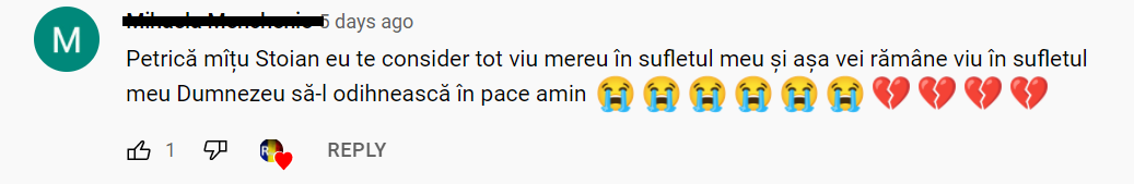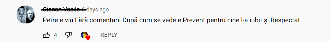 „Petre e viu. Fără comentarii. După cum se vede, este. Prezent pentru cine l-a iubit și respectat / Petrică Mîțu Stoian, eu te consider tot viu, mereu, în sufletul meu și așa vrei rămâne: viu în sufletul meu. Dumnezeu să-l odihnească în pace. Amin”, sunt alte câteva comentarii lăsate de internauți în mediul online.