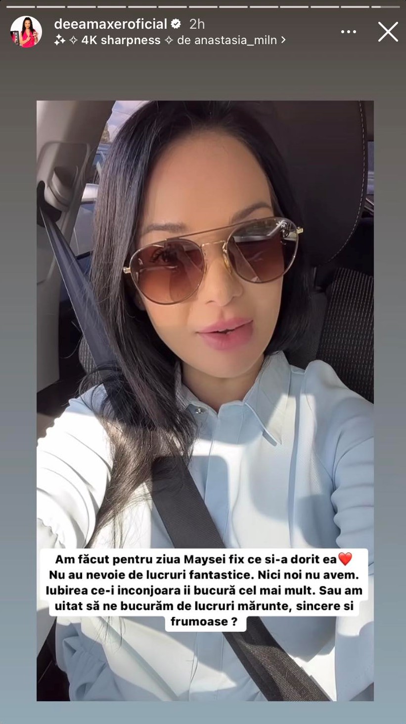 „Am făcut pentru ziua a Maysei fix ce și-a dorit ea. Nu au nevoie de lucruri fantastice. Nici noi nu avem. Iubirea ce-i înconjoară îi bucură cel mai mult. Sau am uitat să ne bucurăm de lucruri mărunte, sincere și frumoase?”, a scris Deea Maxer, într-o postare pe Instagram.