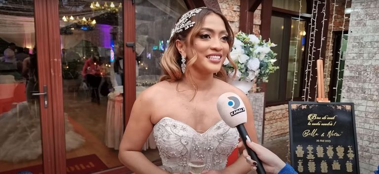 Bella Santiago a purtat două rochii în ziua cea mare, ambele fiind la fel de spectaculoase. La restaurantul unde a avut loc petrecerea, Bella ne-a dezvăluit prețul rochiilor de mireasă pe care a ales să le îmbrace în ziua nunții. Inițial artista a vrut să fie îmbrăcată cu rochii cu etichetă de Filipine, dar a făcut o comparație de prețuri, iar România a ieșit câștigătoare.