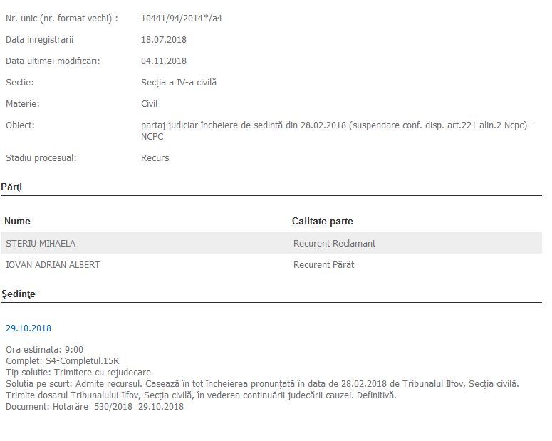 După mai bine de 4 ani de luptă în instanţă pentru averea lui Adrian Iovan, dosarul a fost retrimis de la Curtea de Apel la Tribunalul Bucureşti ”în vederea continuării cauzei”. Decizia instanţei a fost luată la sfârştiul lunii trecute.
