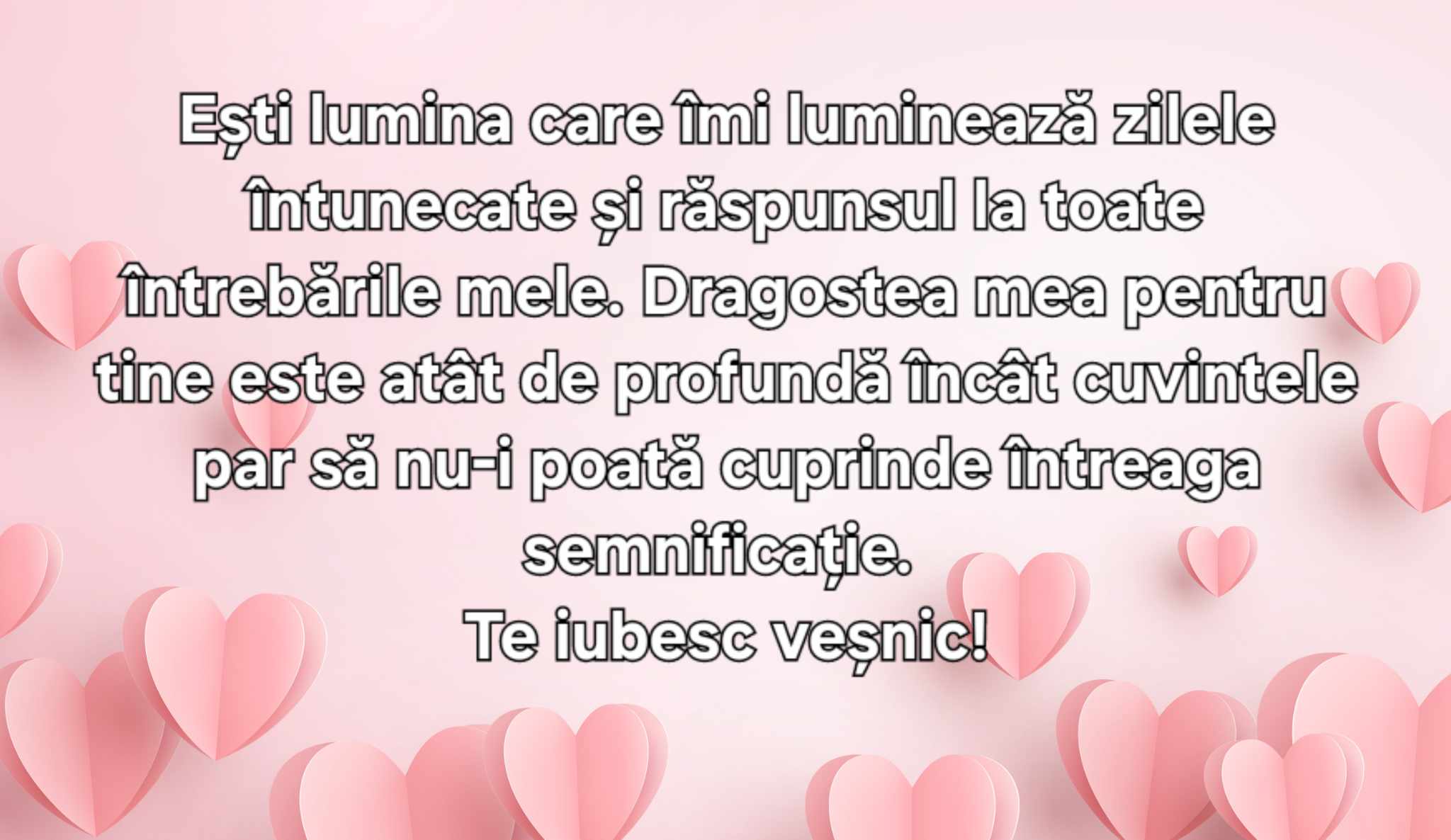 - Nu sunt în stare să îți compun o poezie sau să îți scriu o proză, însă sunt sigur că își pot arăta prin acțiunile mele cât de mult însemni pentru mine. Te iubesc!