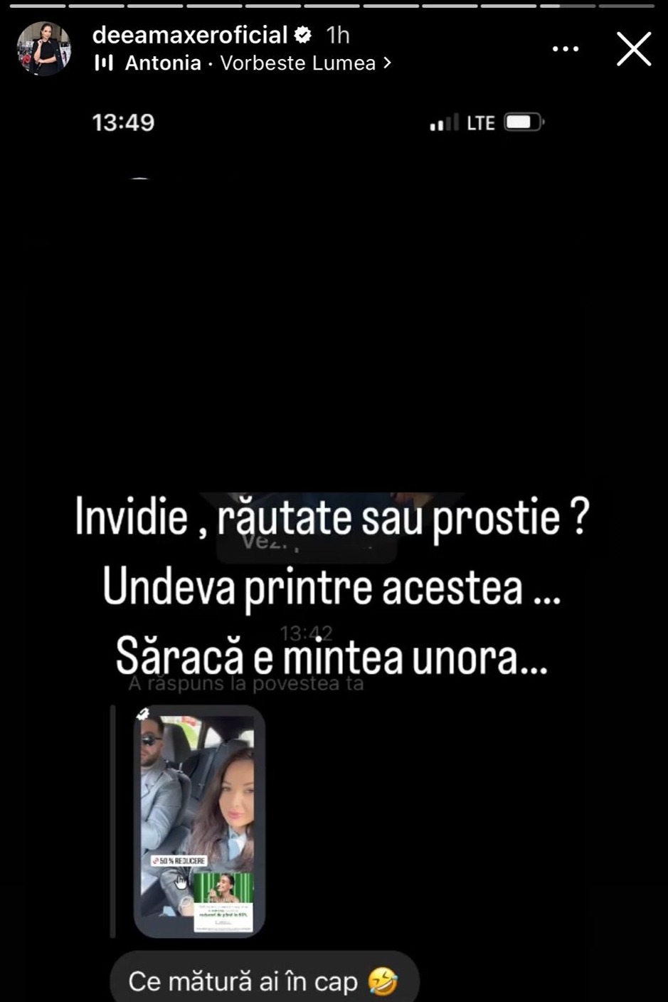 „Invidie, răutate sau prostie? Undeva printre acestea...săracă e mintea unora”, a fost reacția Deei Maxer.