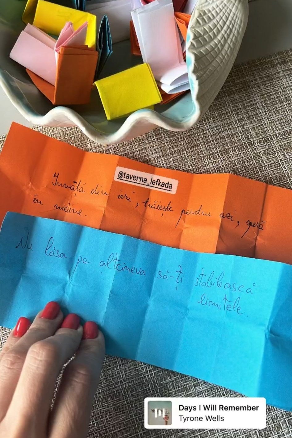 „Afară plouă... cu iubire și lalele/ În suflet ești tu, liniște și mângâiere”/ ” Sunt deschisă să primesc și să ofer iubire. Aseară, întoarsă după o săptămână plecată în țară cu turul de beauty din care fac parte, m-am întors acasă după 5 zile, și da, am fost așteptată cu flori, dar nu o să-ți răspund mai mult de atât, de la cine le-am primit”,