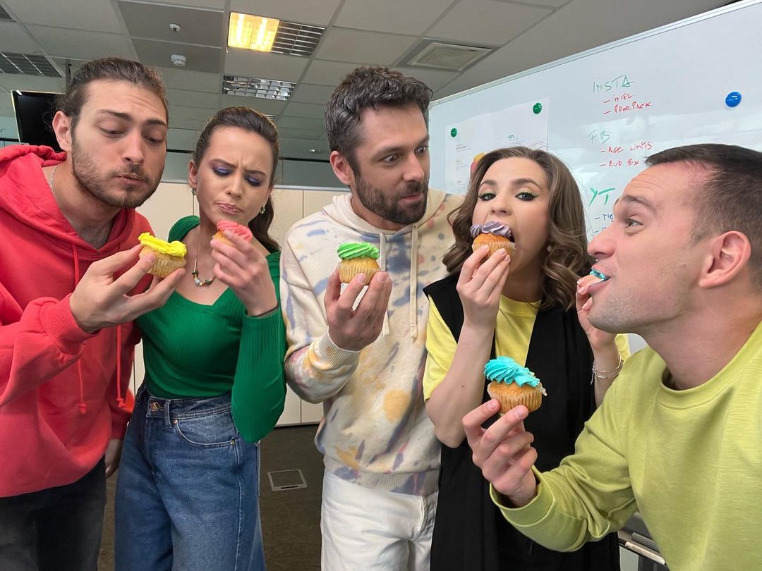 În urmă cu două zile, actorul a postat un selfie alături de fosta lui iubită, dar și de alți trei colegi de filmări, în timp ce toți savurează din câte o brioșă. Din imagine lipsa, însă, actuala lui iubită care a fost și ea prezentă atunci când s-a făcut poza. Fanii au reacținat dur în secțiunea de comentarii și l-au pus la zid pe Vlad Gherman pentru că se afișează, în opinia lor, mult prea des alături de Cristina Ciobănașu. Nu puțini au fost cei care i-au atras atenția asupra faptului că pe Oana moșneagu ar putea să o supere aceste imagini.