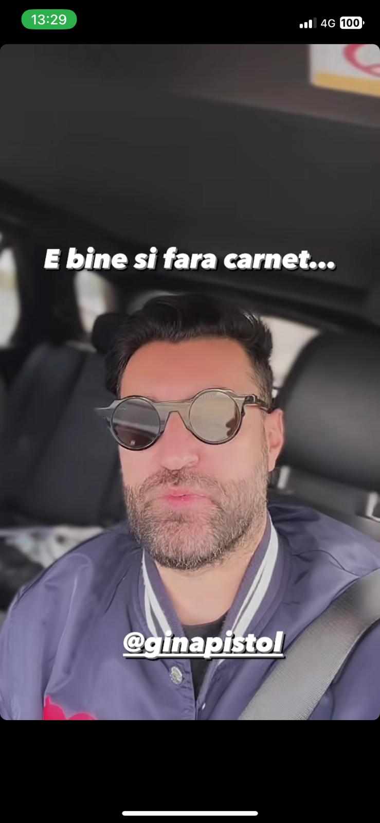 Smiley a rămas fără permis de cunducere de doar câteva zile, însă se pare că Gina Pistol începe să nu mai suporte să fie șoferul soțului său, din cauza traficului haotic din capitală.