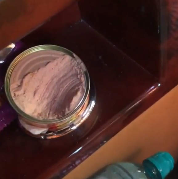 La un moment dat, artista a surprins în imagini și o cutie de pate desfăcută, din care ea sau altcineva s-a înfruptat cu poftă.
