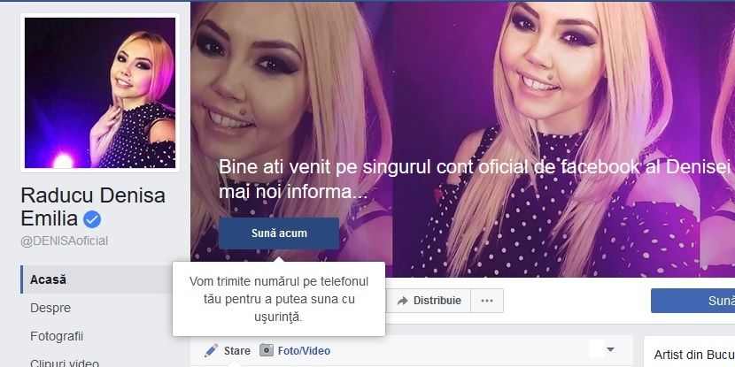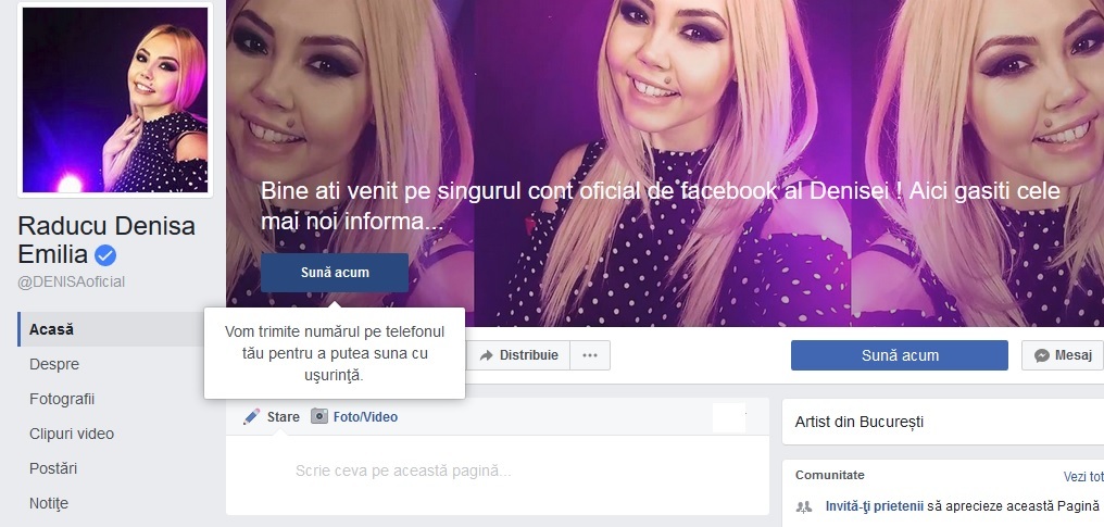 In urma ultimelor schimbari facute de cei de la Facebook, Denisa poate fi contactata al un buton distanta. Pe pagina oficiala a artistei, cantareata este in continuarea promovata asemenea unui artist care continua sa aiba cantari, ba chiar ii indeamna pe fani sa o contacteze, cu promisiunea ca vor primi un mesaj text pe telefon din partea echipei artistei.