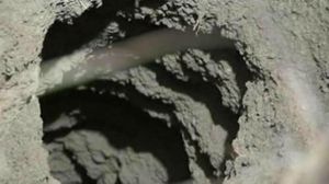 Tunelul pare fara fund. Lat la gura, se ingusteaza apoi cat sa nu poti strecura nici mana! Sa fie, oare, semnul vreunui izvor subteran?!