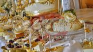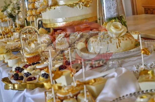 Totul a fost pus la punct pana in cele mai mici amanunte, de la meniul de fite pana la candy-bar-ul cu peste 20 de feluri de prajituri si tortul imens, de cinci etaje, alb cu foite de aur!