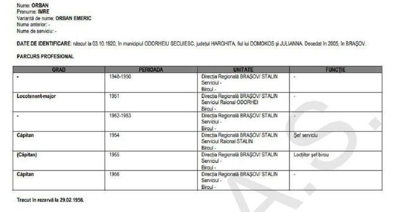 De altfel, inclusiv Consiliul Național de Studiere a Arhivelor Securității (CNSAS) a certificat postura de ofițer al Securității a tatălui lui Ludovic Orban, publicând fișa acestuia, din care reiese că Emeric Orban a lucrat cu Securitatea vreme de 8 ani, între 1948 și 1956, interval în care a avansat de la gradul de