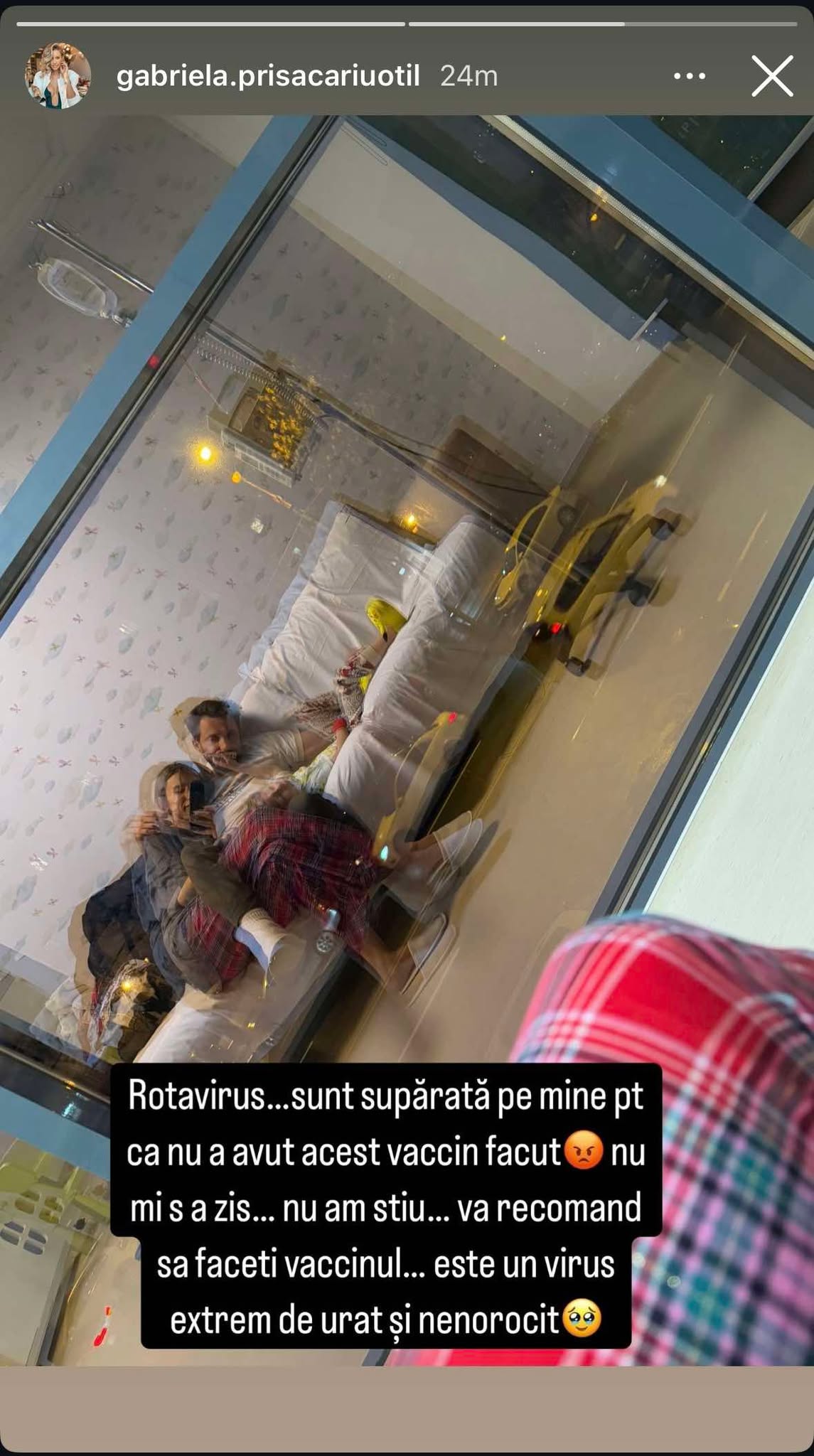 „Rotavirus... sunt supărată pe mine pentru că nu am avut acest vaccin făcut. Nu mi s-a zis..... nu am știut... vă recomand să faceți vaccinul... este un virus extrem de urât și nenorocit”, a scris Gabriela Prisăcariu, astăzi, pe Instagram.