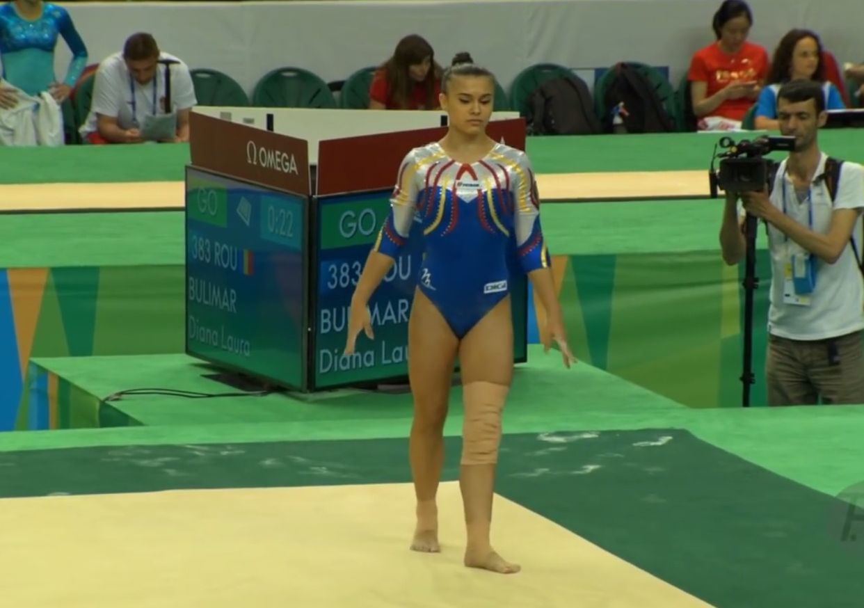“Gimnasta româncă şi-a creat propria mişcare personală în 2011. Exerciţiul la sol a constat din săritură în sfoară laterală şi o treime de piruetă în aer. Diana Bulimar este dublă campioană mondială şi a caştigat bronzul cu echipa Romaniei la Jocurile Olimpice din 2012”, a dezvăluit revista Elle.
