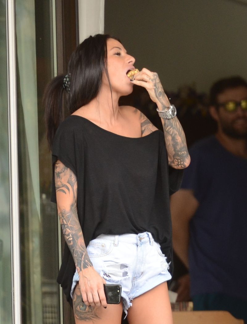 Dupa o degustare pe cinste, cei doi au parasit locatia fericiti si ghiftuiti. Ca de obicei in verva, Roxana a facut spectacol atat cu tinuta ei, ca de obicei „la vedere”, dar si cu miscarile dezordonate, care le-au permis paparazzilor sa capteze niste unghiuri aproape imposibile cu sanii vedetei, dar si cu lenjeria intima de sub pantalonii scurti cu care era echipata.