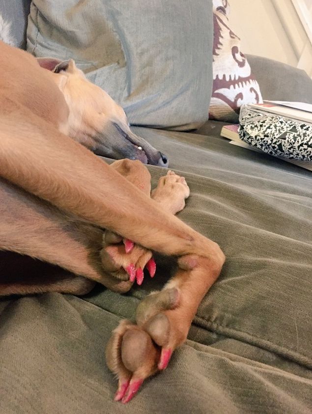 Mama ei s-a amuzat atat de tare in momentul in care a vazut cainele cu ghearele roz dormind, incat nu s-a abtinut sa nu imparta si cu prietenii ei virtuali intamplarea.