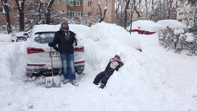 In timp ce sotiile isi cheama sotii in ajutor, sa le curete locul de parcare si sa le scoata masinile de sub nameti, Dinu Maxer face invers ca restul lumii.