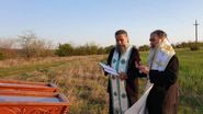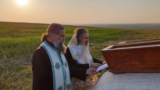 Duhovnicul lui Aurelian Preda a făcut slujbă în câmp, nu departe de Mânăstuirea Dervent.