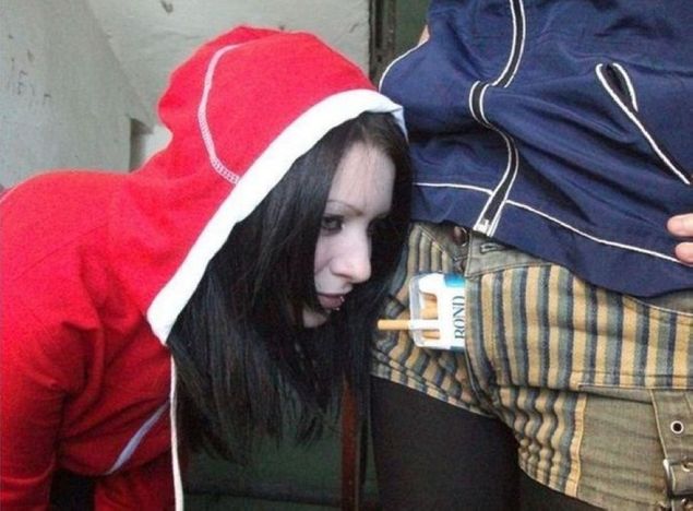 Doua tinere au reusit sa se faca de ras in mediul online, dar si in fata prietenilor lor. Acestea au vrut sa aiba o imagine care sa le aduca multe likeuri si comentarii indecente din partea barbatilor asa ca au bagat un pachet de tigari in slitul pantalonilor uneia dintre ele. Cealata, fara jena, s-a aplecat sa ia cu gura o tigara din pachet, simuland in acest fel un sex oral.