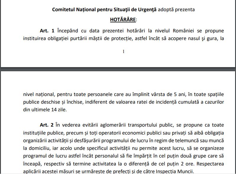 În propunerea Comitetului Național pentru Situații de Urgență sunt prevăzute următoarele:
