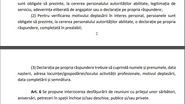 Declarația trebuie să cuprindă numele și prenumele, data nașterii, adresa locuinței/gospodăriei/locului activității profesionale, motivul deplasării, data completării și semnătura.