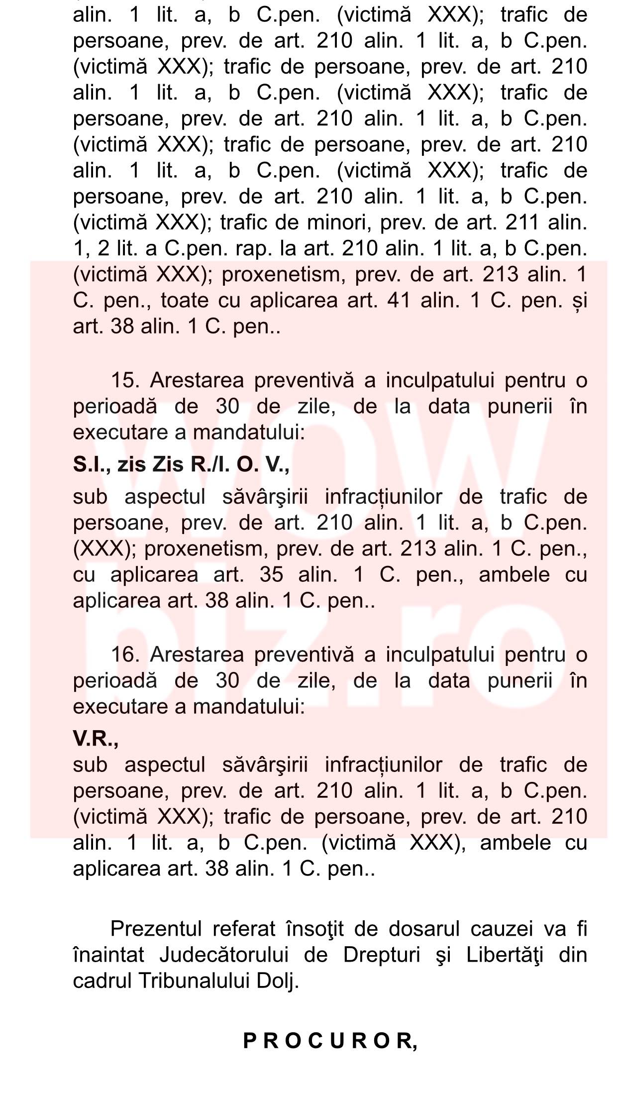 Prin ordonanţa D.I.I.C.O.T. – Serviciul Teritorial Craiova din data de 07.08.2015 s-a dispus începerea urmăririi penale cu privire la infracţiunile de trafic de persoane, prev. de art. 210 alin. 1 lit. a, b C.pen. și proxenetism, prev. de art. 213 C.pen..