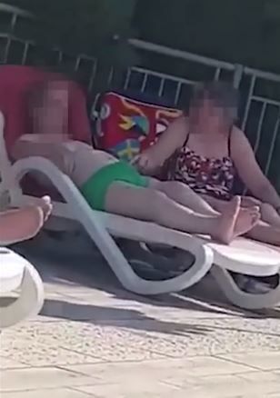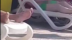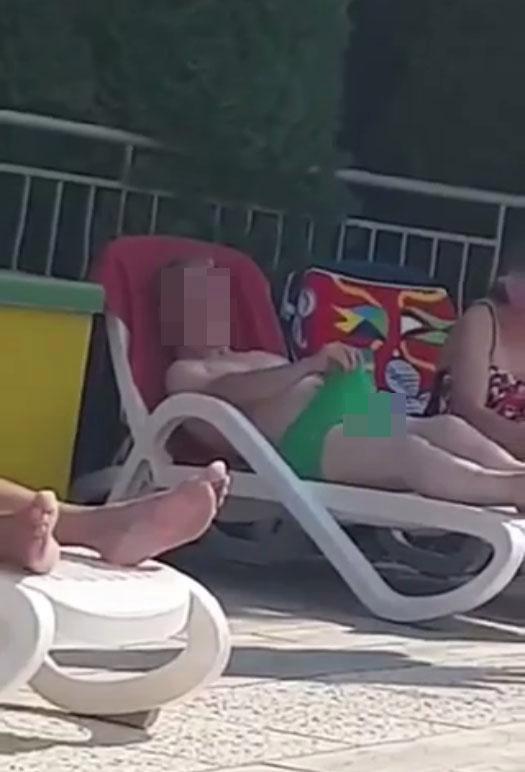 Cuplul se afla pe marginea piscinei in vazul multor turisti cand femeia a inceput sa il atinga pe partner intr-un mod nepotrivit pentru locul in care se aflau. Mai multi oameni aflati in vacanta ii priveau socati pe cei doi, in timp ce altii i-au si filmat. Clipul a devenit viral pe internet, pesionarii fiind surprinsi in imagini timp de aproape un minut.