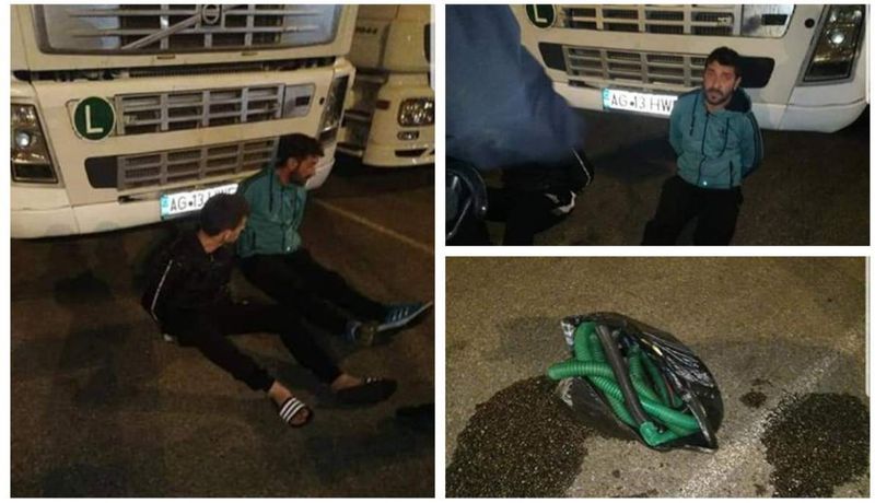 Doi șoferi români din Argeș au fost prinși în timp ce furau motorina dintr-un camion aflat într-o parcare din Strasbourg. Cei care i-au prins în fapt sunt alți șoferi de camioane, cel mai probabil de origine bulgară.