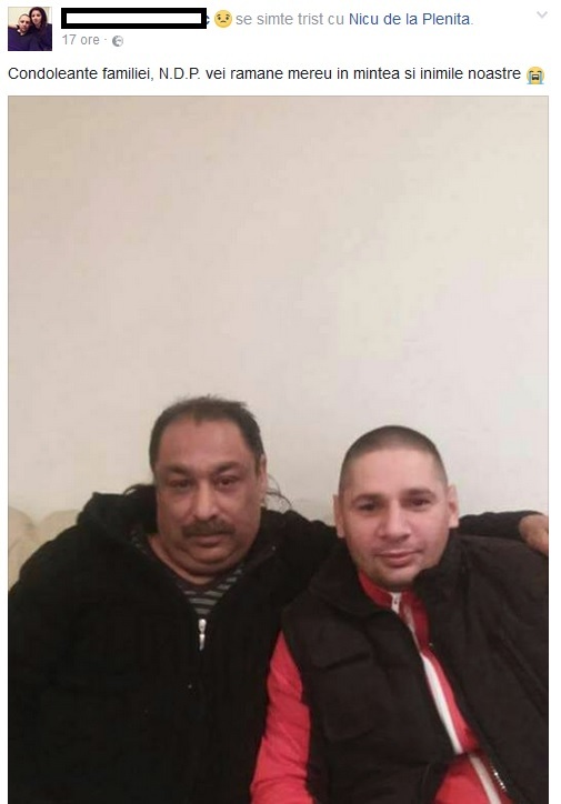 "Cu mare tristete in suflet spun... ca bunul meu prieten si frate Nicu de la Plenita cel care a fost rampa de lansare pt majoritatea solistilor consacrati din Romania a plecat dintre noi! D-zeu sa-l odihneasca in pace! Nu te voi uita niciodata fratele meu!!!", au transmis apropiatii pe retelele de socializare.